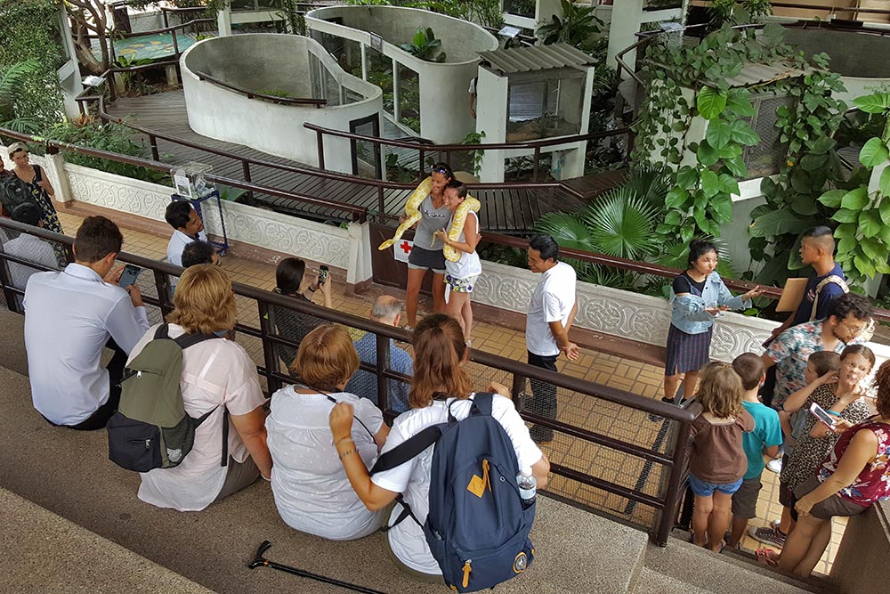 Visit the Snake Farm, adults pay 200 Baht, Children pay 50 Baht.